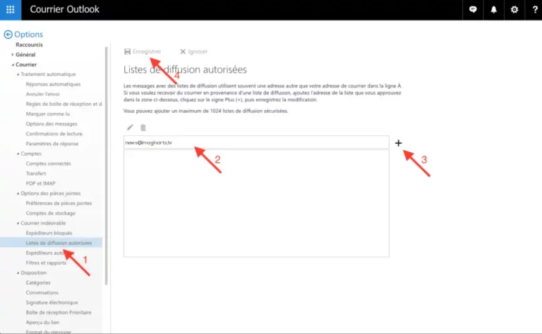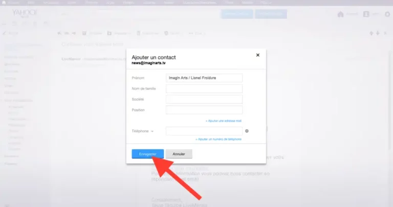 3. Entrez news@imaginarts.tv dans le champs prévu à cet effet puis cliquez sur « Enregistrer »