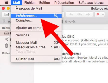 1. Cliquez sur le menu « Mail », puis « Préférences… »